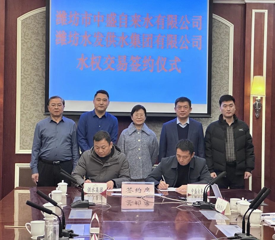 1月2日,濰坊水發供水集團有限公司與濰坊市中盛自來水有限公司舉行水權交易簽約儀式,標志著山東省首例跨區域取水權交易成功落地,是深入推進水權改革的標志性成果。省水利廳水資源處一級調研員題偉,濰坊市水利局黨組成員、市水利事業發展中心主任韓俊清,峽山區、濱海區水利局負責人參加評審并見證交易簽約儀式。