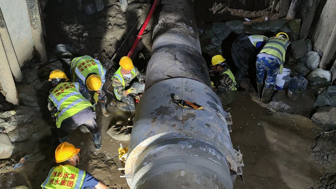 接到報告后,公司立即啟動應(yīng)急預(yù)案,黨員突擊隊在第一時間集結(jié),帶上專業(yè)工具和設(shè)備奔赴故障現(xiàn)場,勘查破損位置。同時利用管網(wǎng)互通的有利條件,緊急協(xié)調(diào)第三供水管線向第一供水管線下游用戶持續(xù)供水,以解燃眉之急。